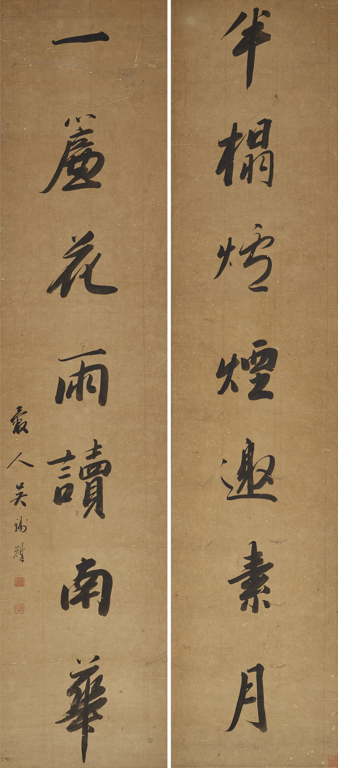 A pair of scrolls, mounted and framed, ink on gold-flecked paper