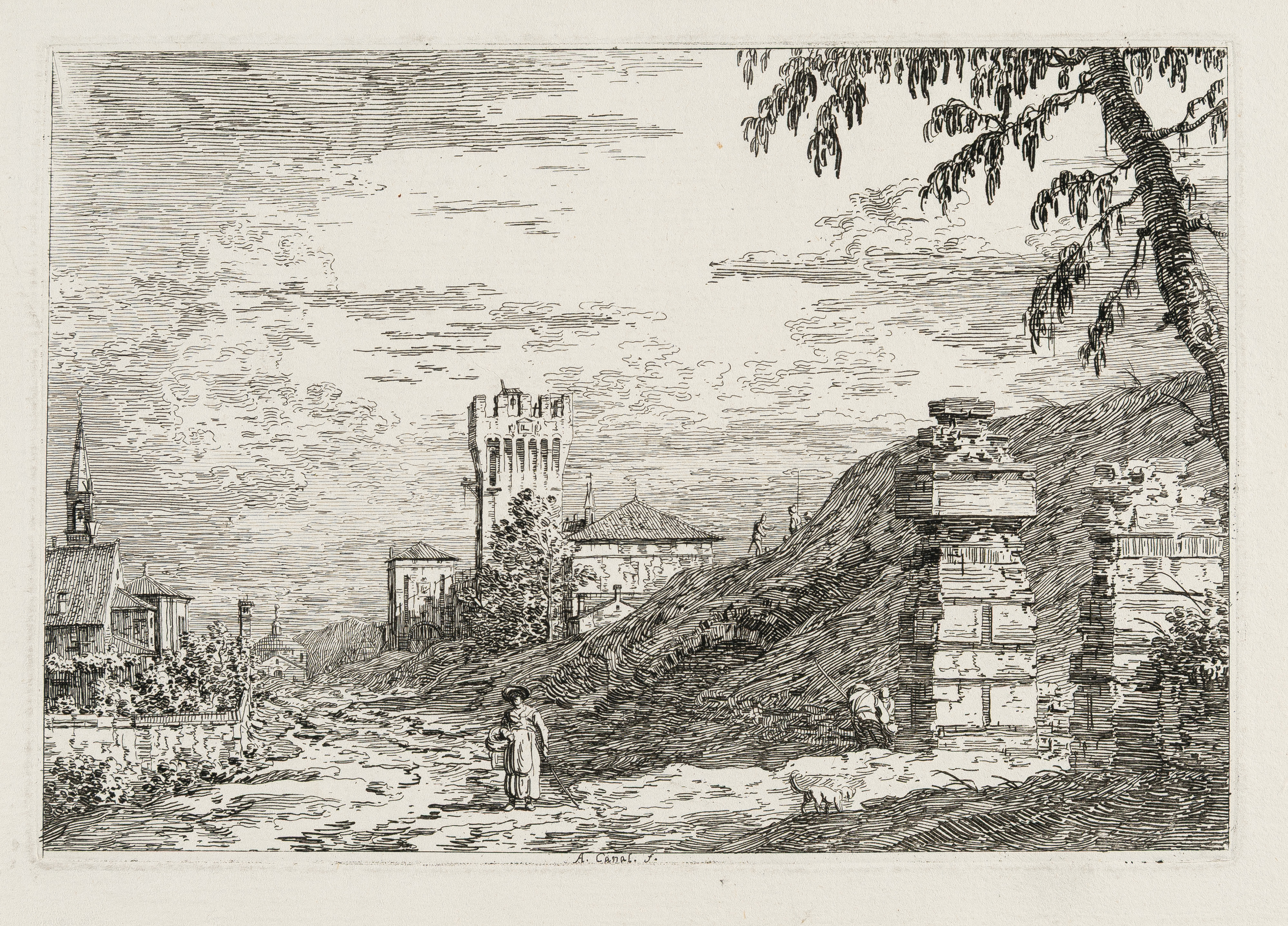 View of a Town on a River Bank, from the series 'Vedute altre prese da i lu...