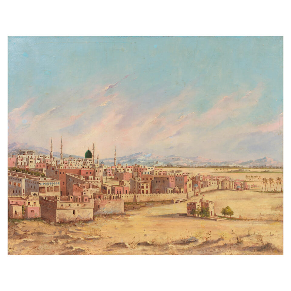 A view of the Mosque of the Prophet at Medina, and the surrounding town