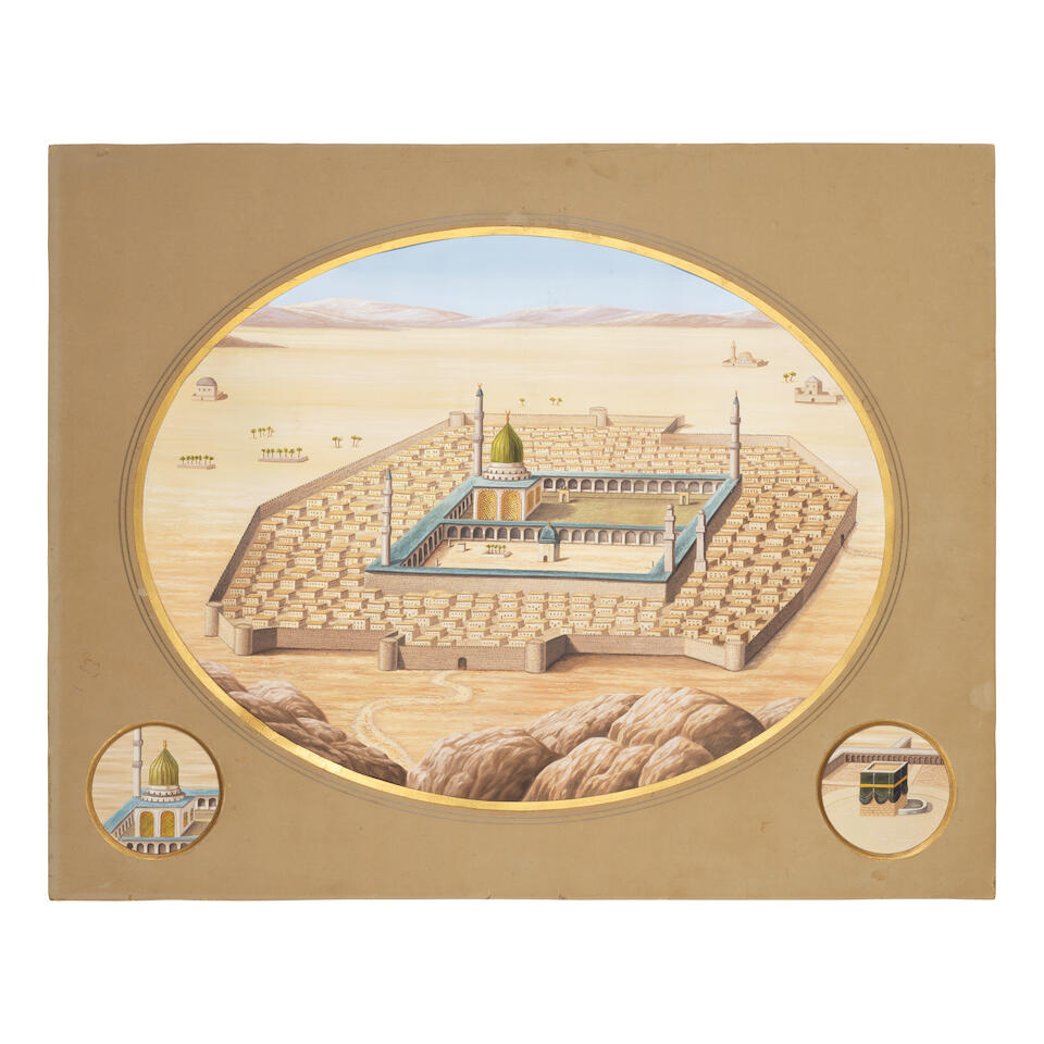 Two views depicting the Ka'ba at Mecca and the Mosque of the Prophet at Medina, signed by ...