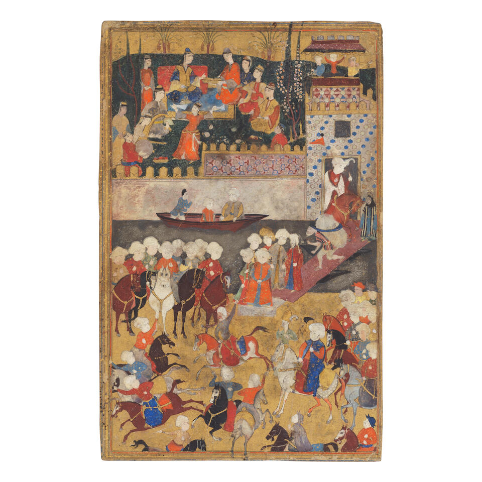 gouache and gold on paper, gold and black margin rules, in E...