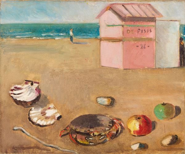 Sole e luna sulla spiaggia, signed G. de Chirico