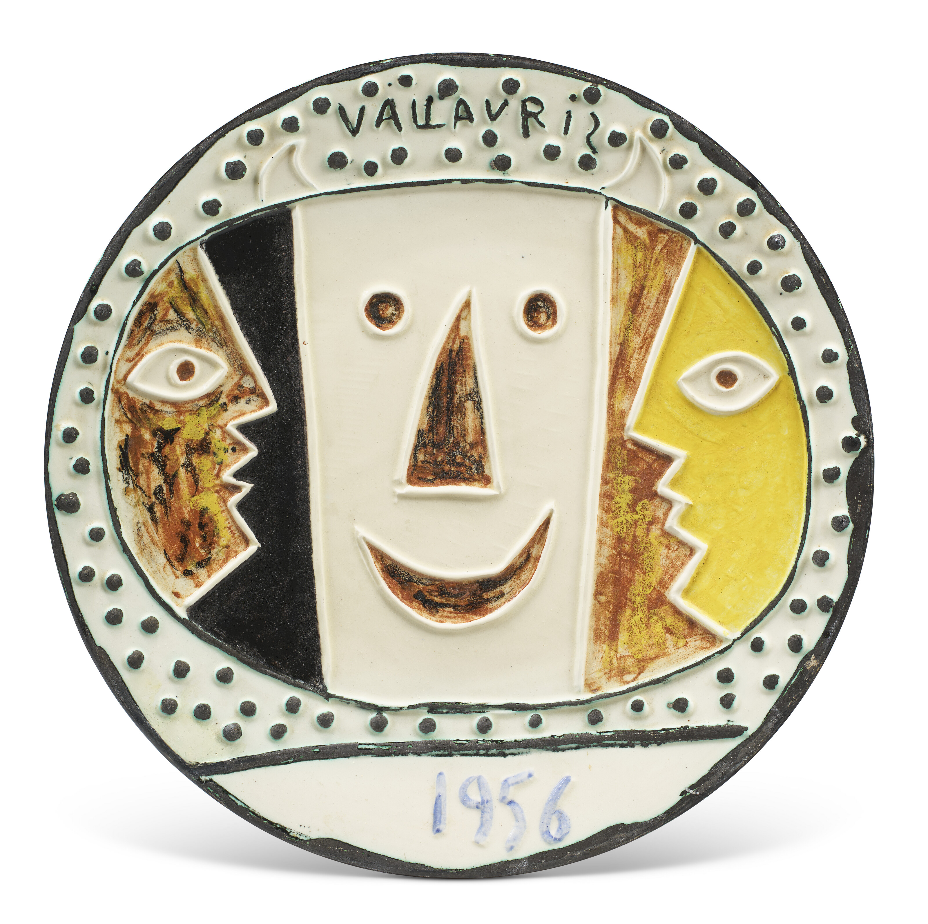 white earthenware ceramic plate, partially engraved, with colored engobe and glaze