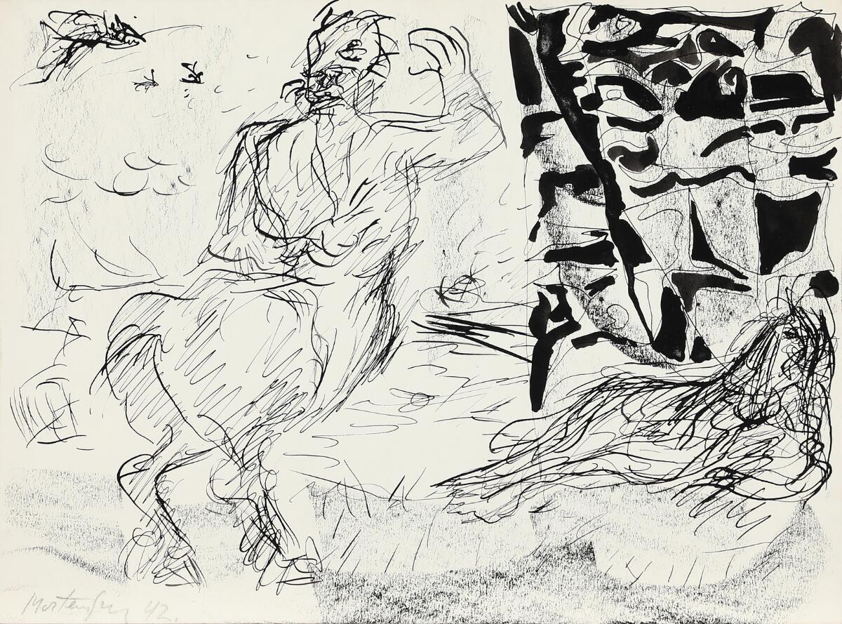pen and ink, colored crayon and pencil on paper