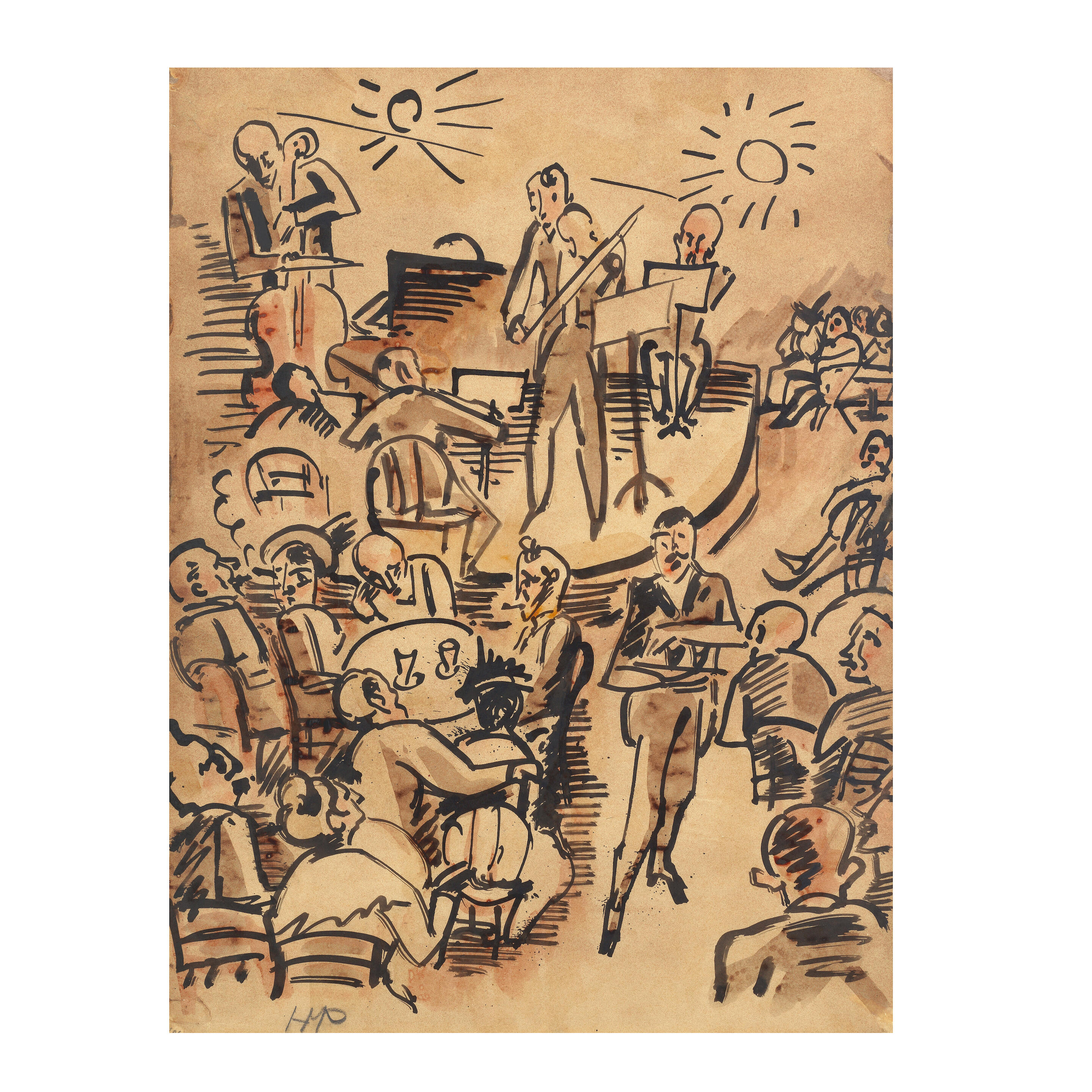 Coloured chalk and India ink