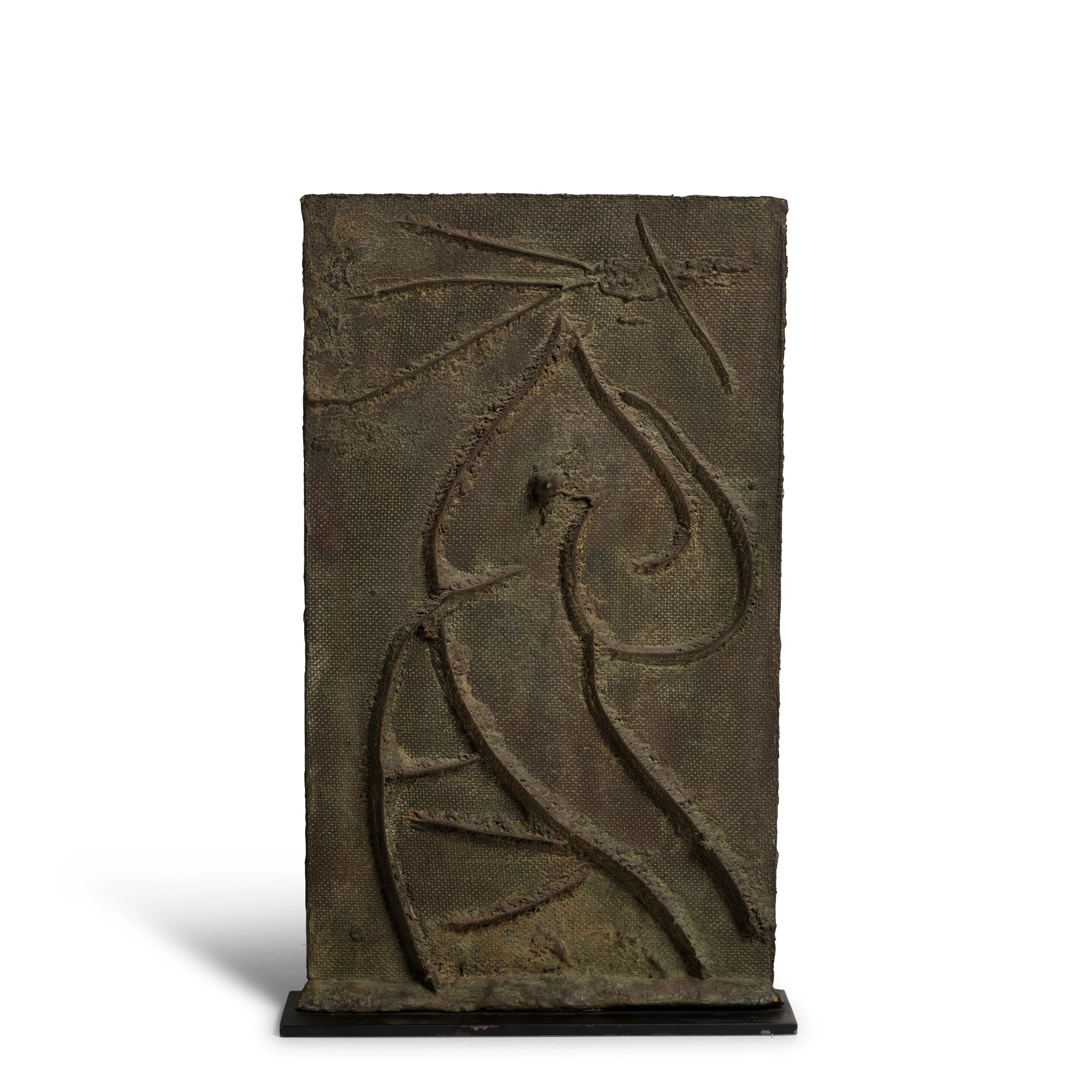 oil, watercolor and brush and black ink on paper laid down on cradled panel